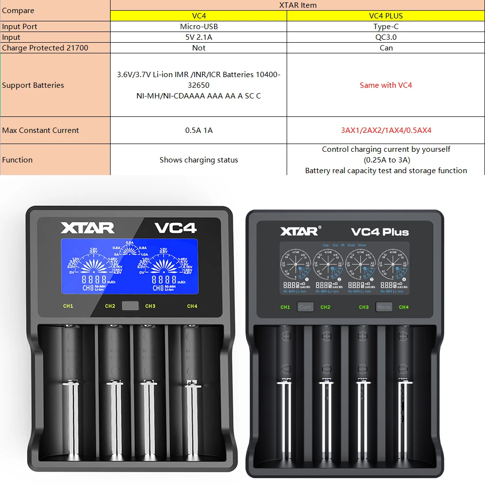 XTAR Quick Battery Charger 18650 VC4 PLUS LCD Display Fast CHARGER QC3.0 Charging Rechargeable 21700 20700 Battery 18650 Charger